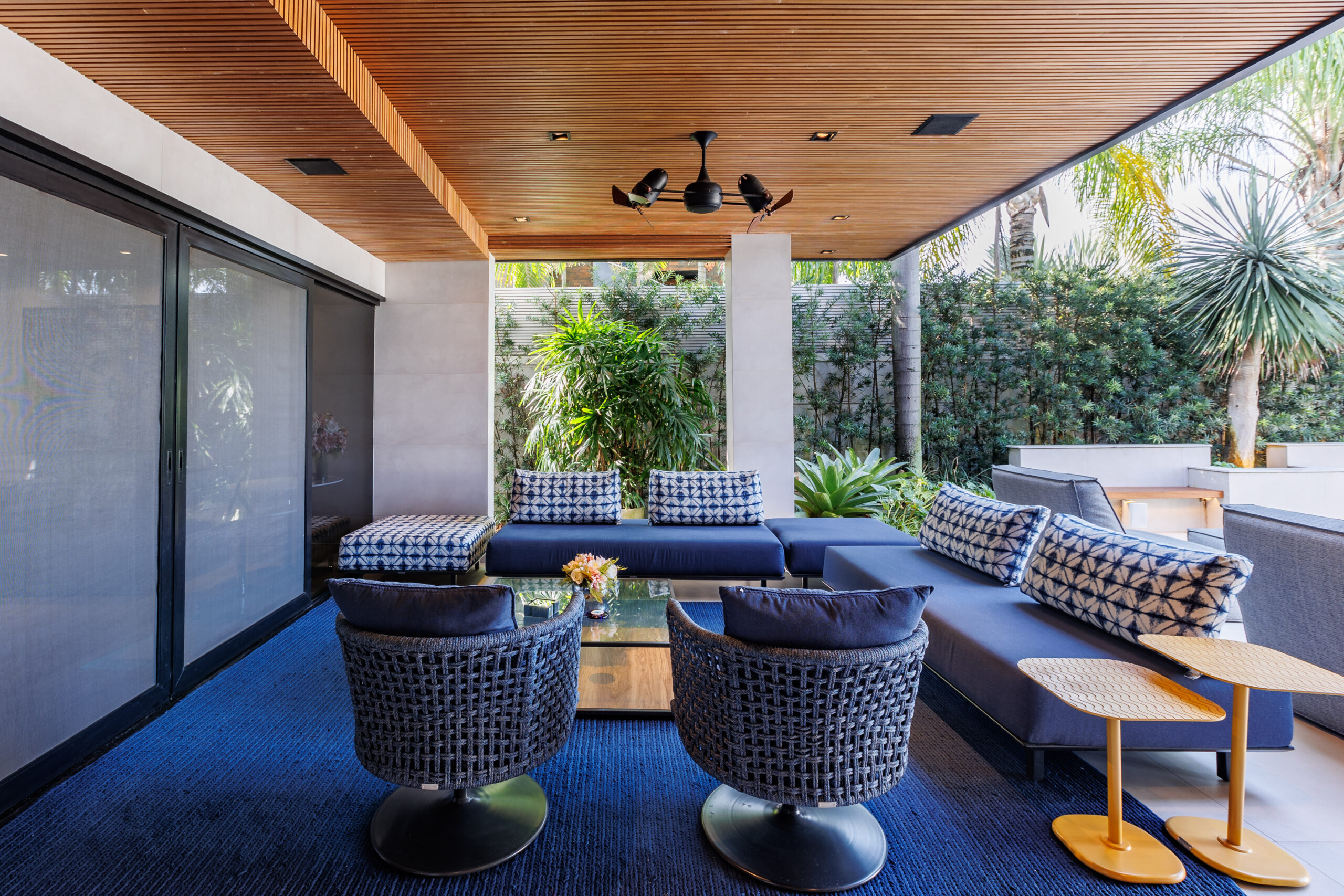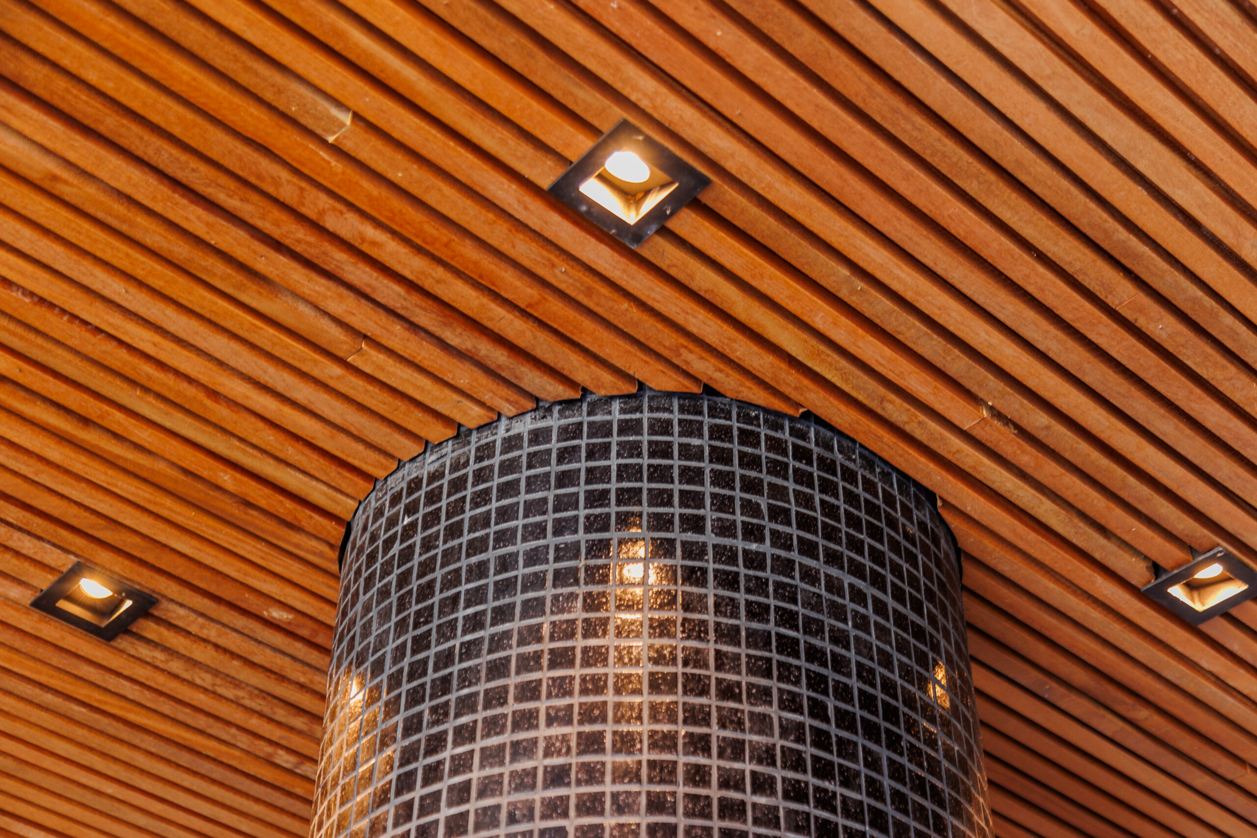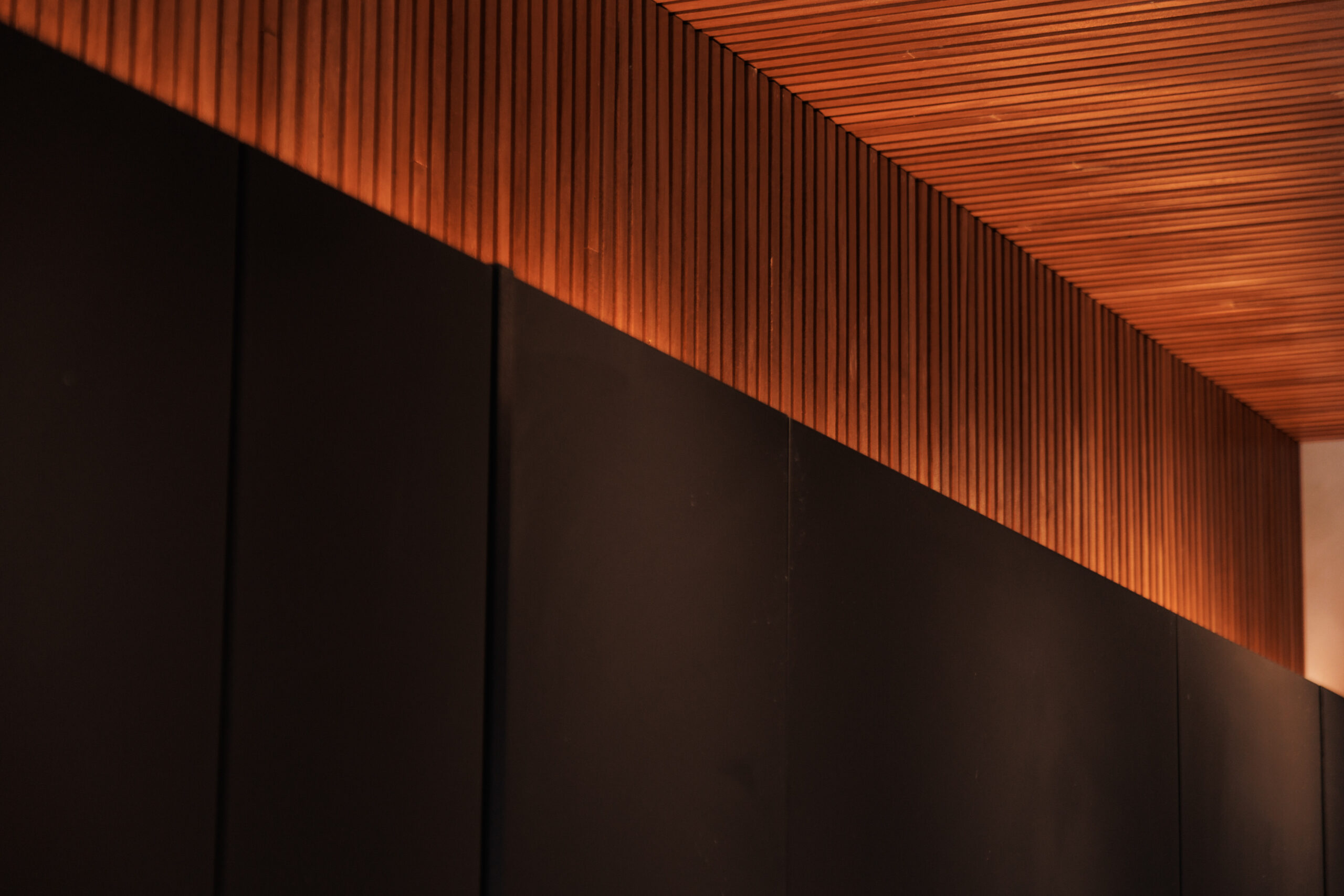 A utilização da pedra hijau, forros em madeira ripada, as cores escuras e o design do mobiliário trouxeram o ar contemporâneo desejado.