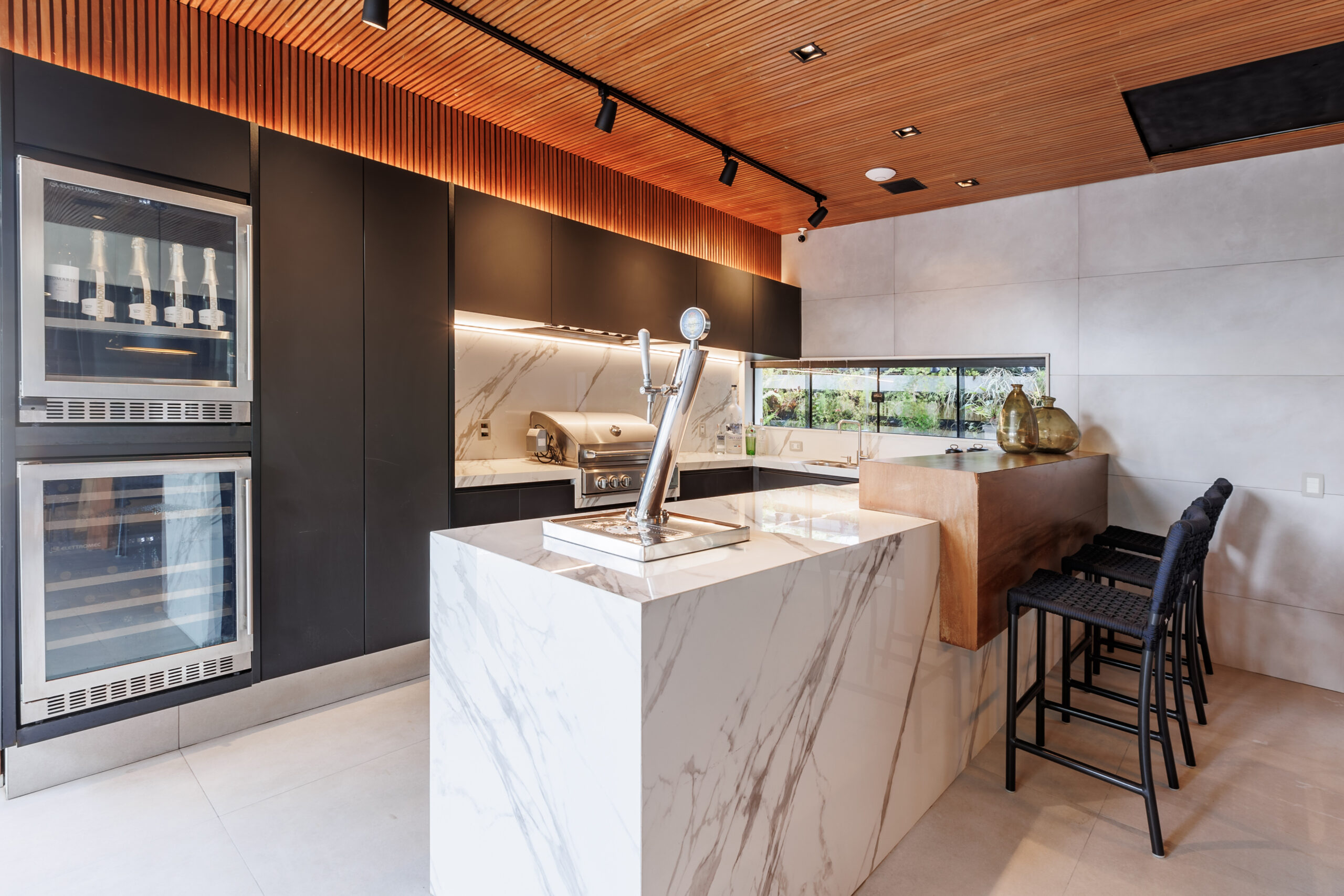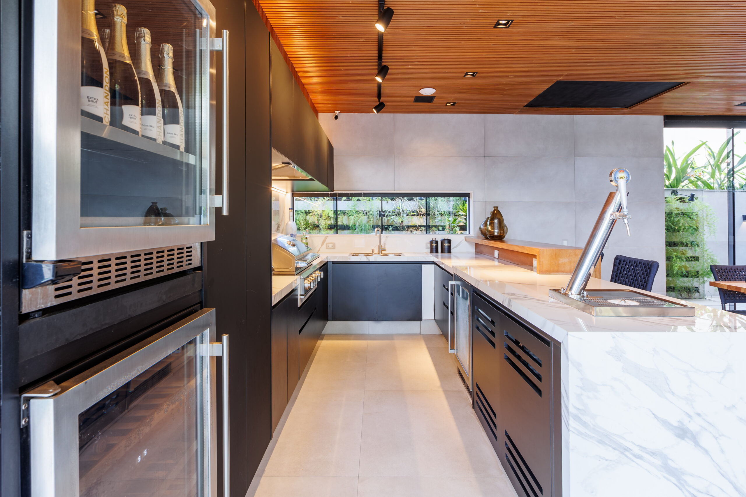 A intenção dos clientes com a reforma dessa área de lazer era deixá-la mais moderna e ganhar espaço funcional, agregando a área da piscina e o espaço gourmet, para poderem receber seus muitos amigos e familiares.