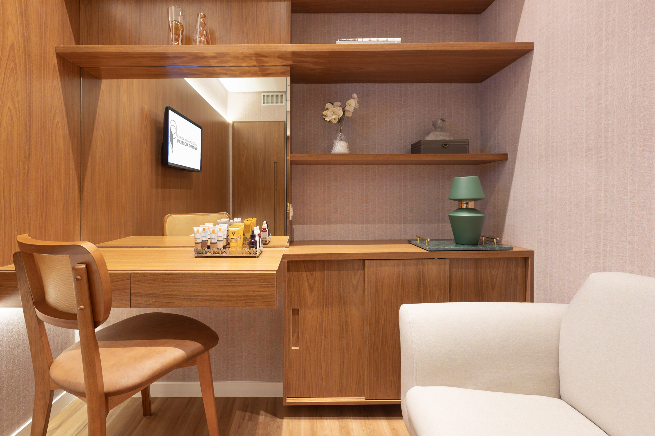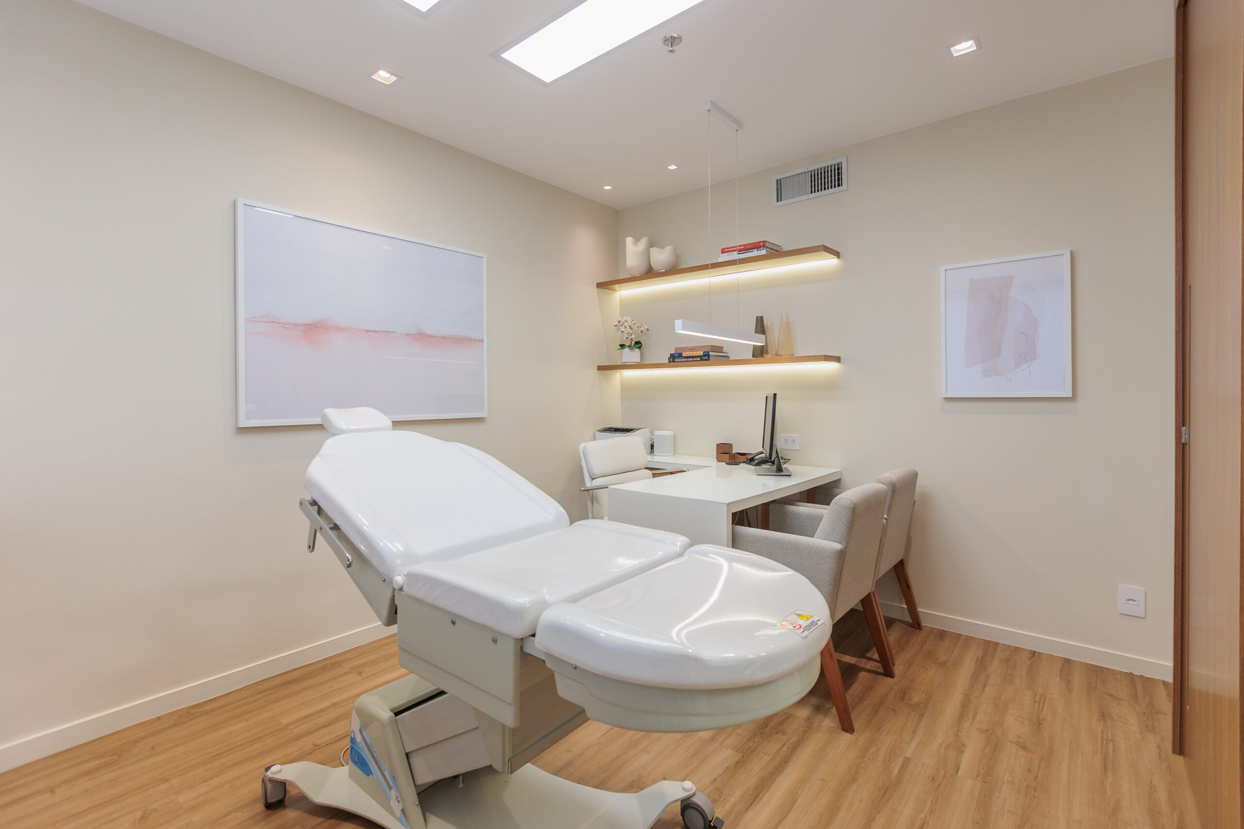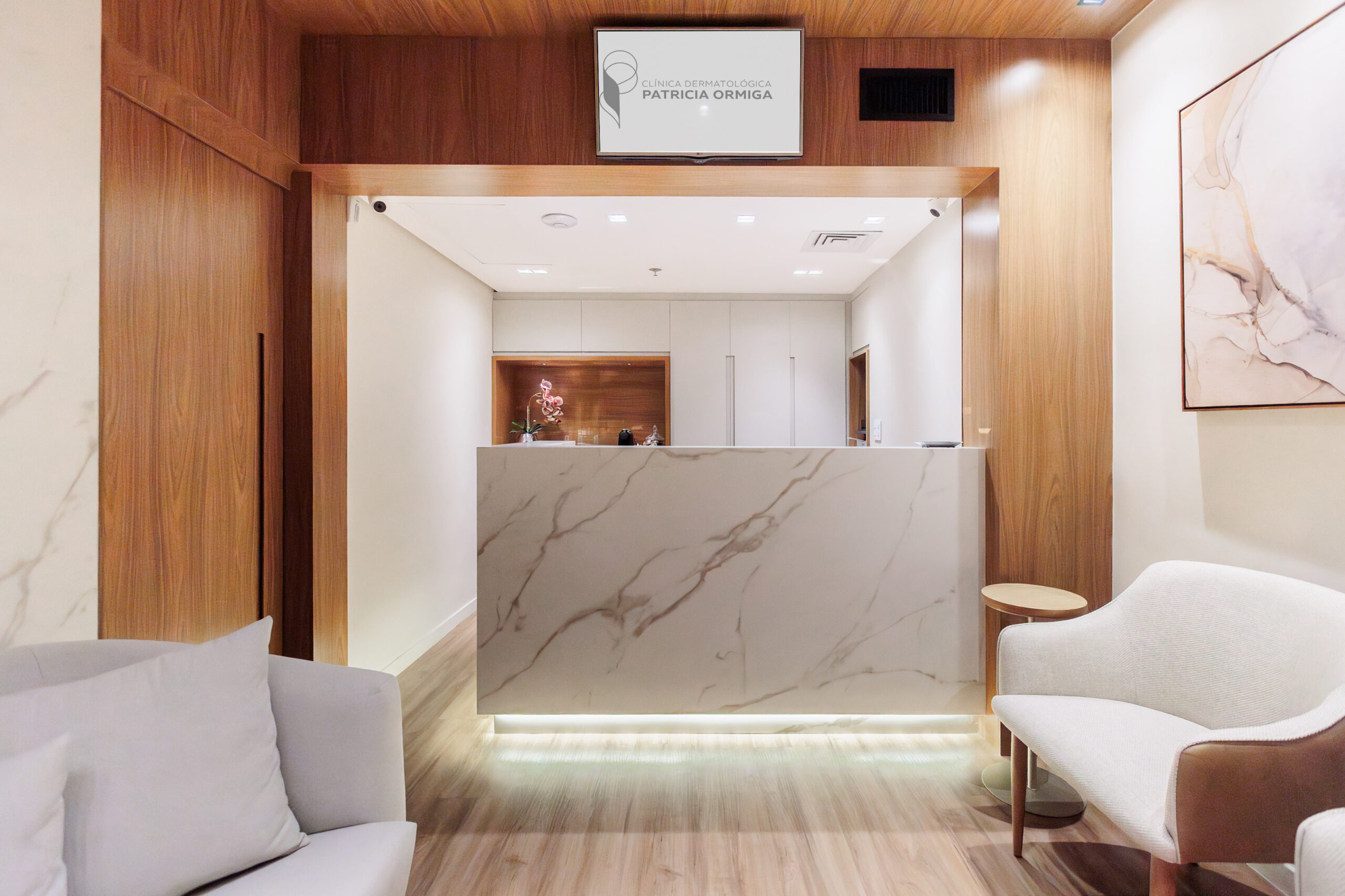 Após projetarmos a clínica anterior da Patrícia com uma estética mais feminina, ela nos solicitou para o novo espaço um ambiente mais neutro e contemporâneo, além de acolhedor, sem perder a sofisticação e funcionalidade.