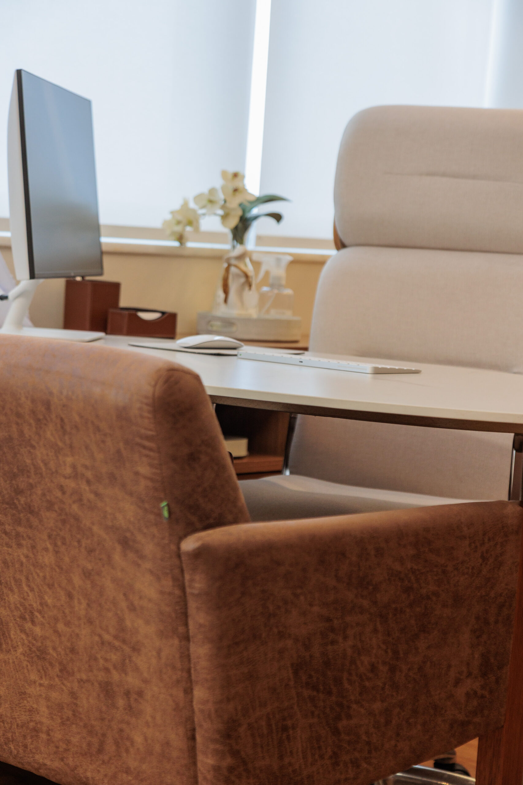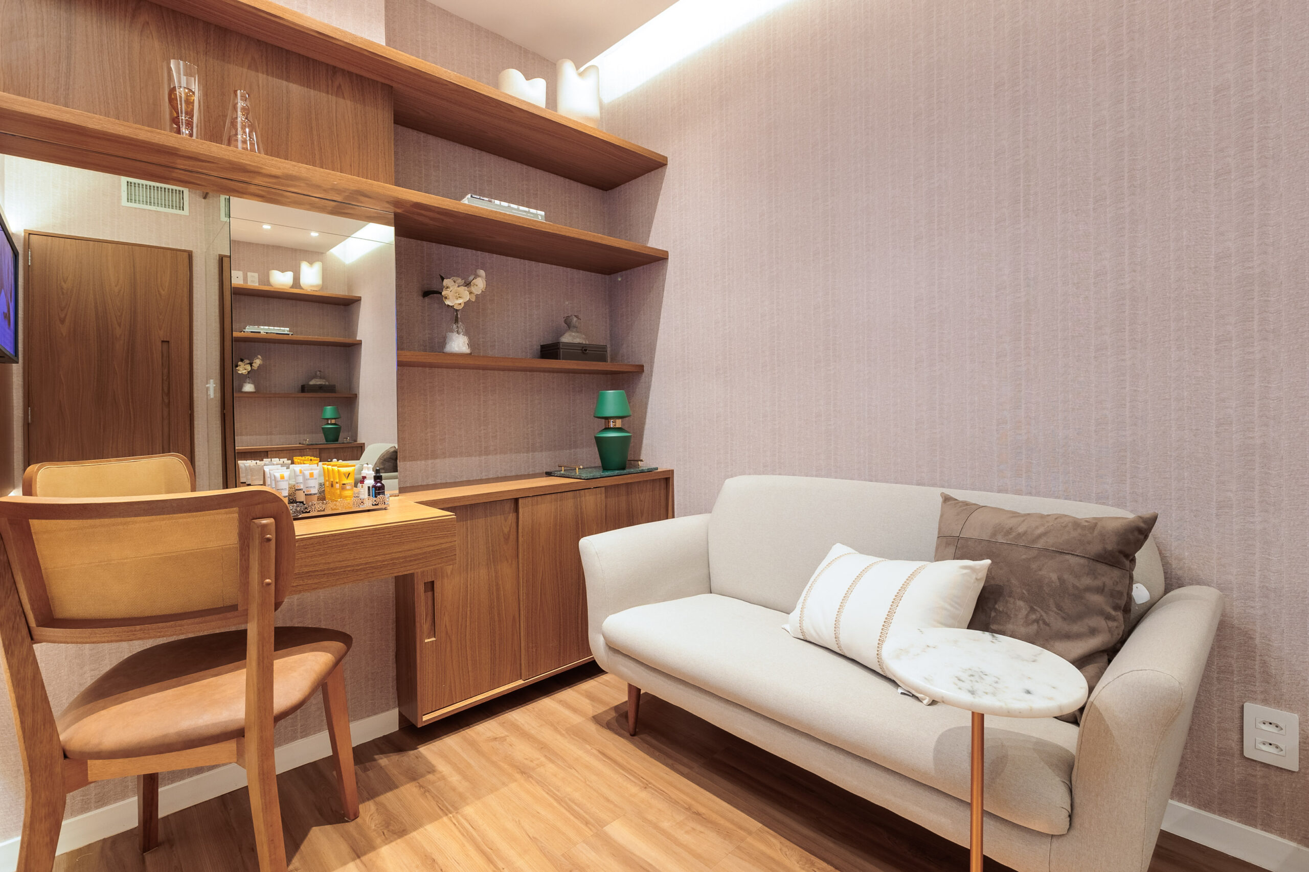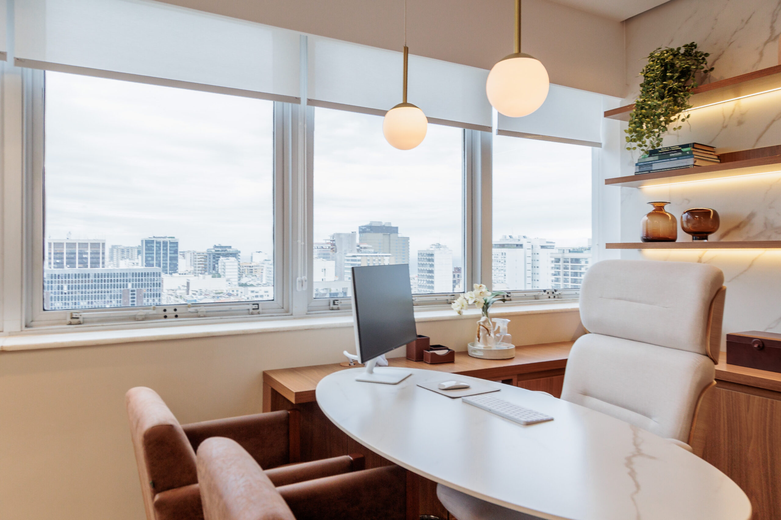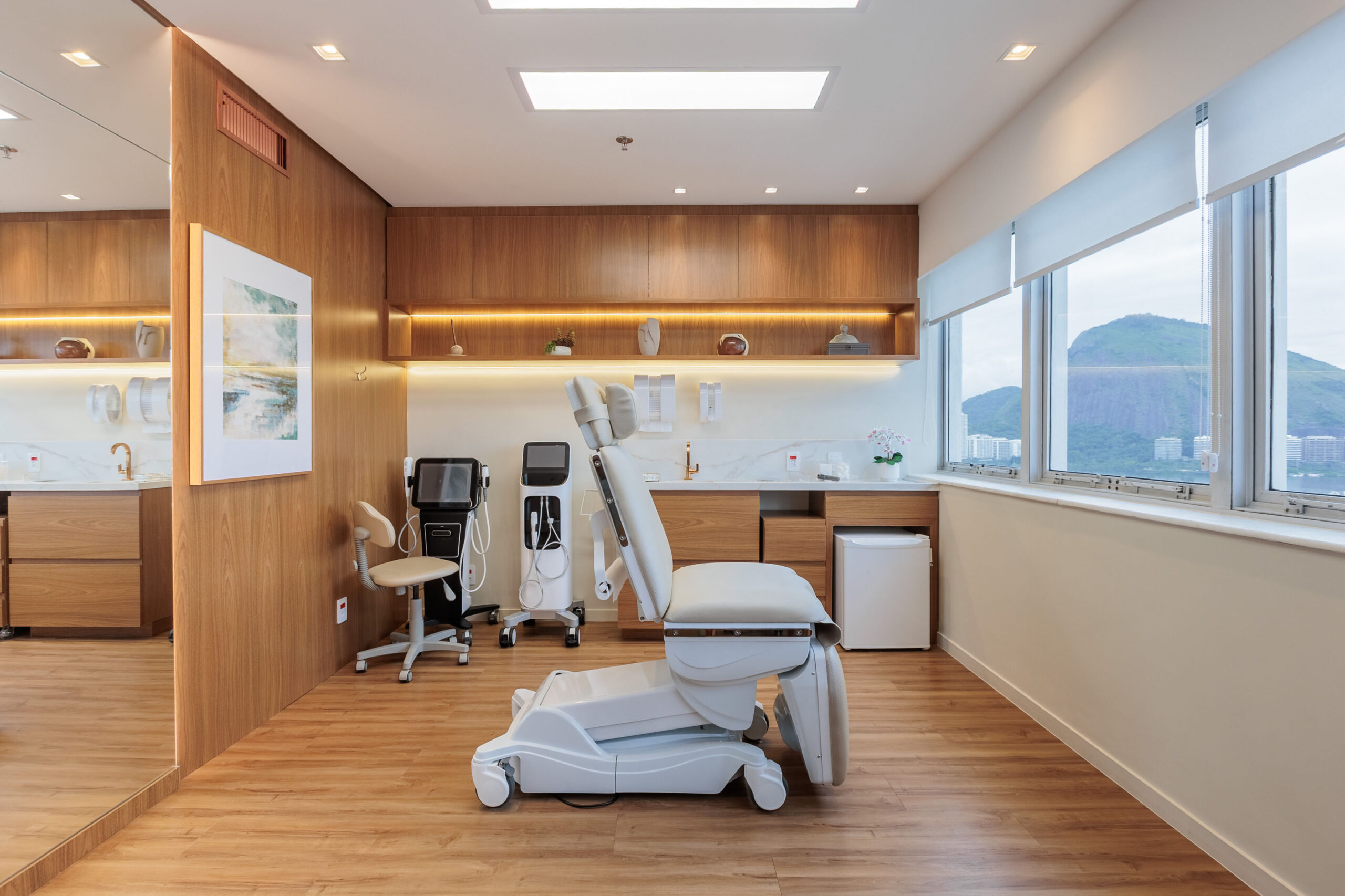 Após projetarmos a clínica anterior da Patrícia com uma estética mais feminina, ela nos solicitou para o novo espaço um ambiente mais neutro e contemporâneo, além de acolhedor, sem perder a sofisticação e funcionalidade.
